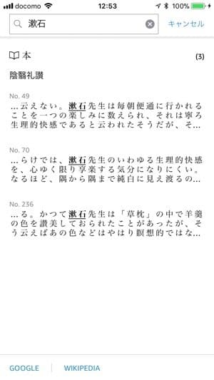 たとえば有名なフレーズがどの場面で使われているのか調べたり、小説の登場人物がどこで登場するのかを調べたりするのに大変便利な機能です。