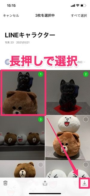LINEアルバムの写真・動画を複数選択してダウンロードする方法