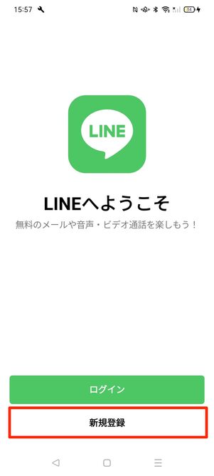 端末の初期設定が完了したら、LINEアプリをインストールします。アプリを起動したら、[新規登録]をタップ。