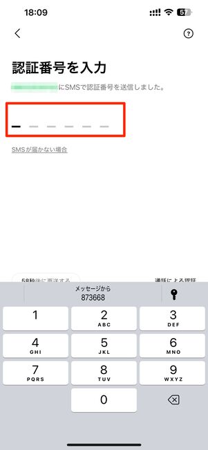 サブ回線の電話番号宛にSMSで6桁の認証番号が届くので、これをLINEの画面入力してください。