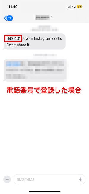 先ほど入力した電話番号のSMSもしくはメールアドレス宛に、6桁の数字で構成された認証コードが届きます。