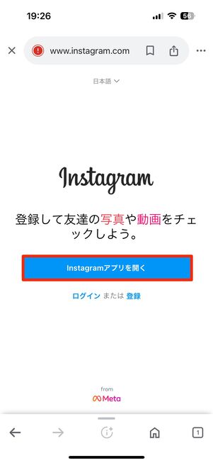 アプリ「Instagram」をダウンロードまずは上のボタンからInstagramアプリをインストールして、アプリを起動します。
