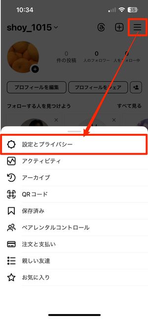 ユーザーネームをタップ