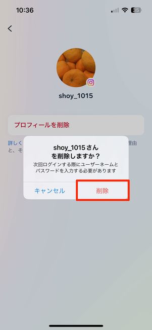 ここでの「削除」はあくまでログイン情報を削除するのみ。アカウント自体が削除されるわけではないので安心してください。
