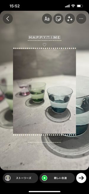 ストーリー作成画面で写真を選択し、背景全体に拡大する