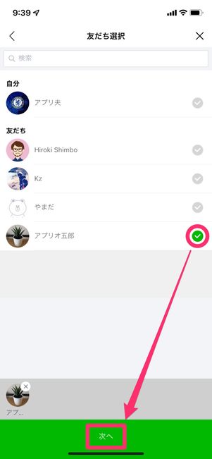 誕生日を登録したい友だちを選択(複数選択不可)して[次へ]をタップします。