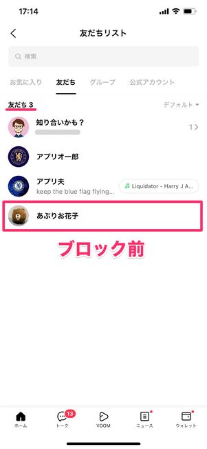 このことから、ブロックすると友だちリストから相手の名前が消えることがわかります。