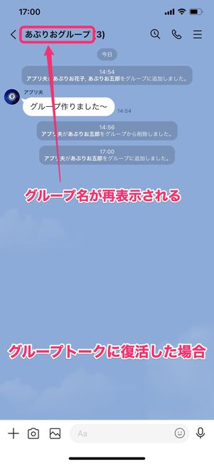 グループトークを強制退会させられても、再度招待してもらえれば復活できる