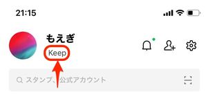 Keepに保存したファイルは、「ホーム」タブの自分のアカウント名の横にあるKeepボタン、もしくは画面上部にあるリボンマークから閲覧・ダウンロードできます。