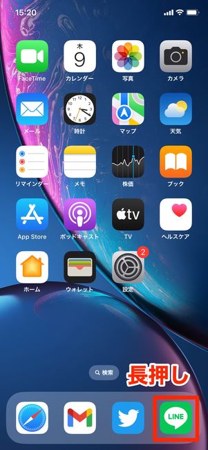 ホーム画面でLINEアプリを長押しします。画面右上の[アンインストール]までドラッグし、指を離せばアンインストール完了です。