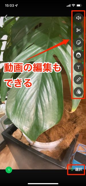なお、投稿前に動画を加工することもできます。音声のミュート、トリミング、スタンプや文字入れなどが可能です。