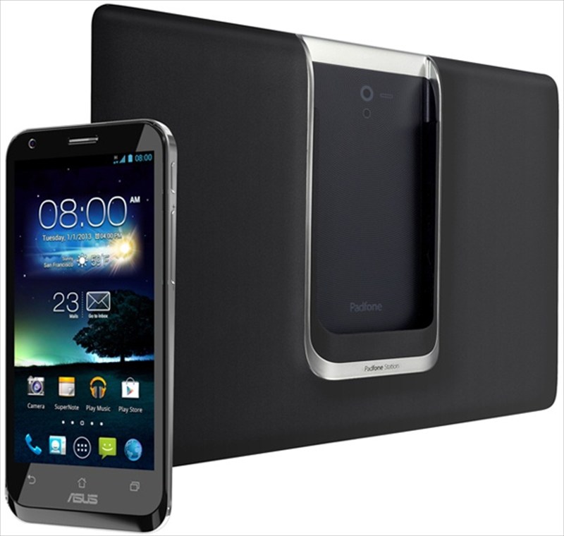 PadFone 2は、4.7インチ1280×720ピクセルのSuper IPS+液晶ディスプレイを搭載するAndroid(4.1.1)スマートフォン。付属する専用ドック(PadFone 2 Station)の背面スリットにスマホを装着し、10.1インチのタブレット端末として利用できる「合体」モデルとなっている。