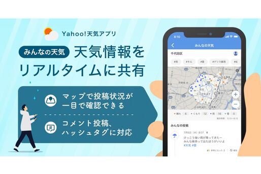ヤフーは2022年8月29日、iOS版Yahoo!天気アプリにおいて、ユーザー同士で天気情報を共有できる「みんなの天気」の提供を開始したと発表しました。「みんなの天気」は、iOS版Yahoo!天気アプリ「バージョン8.12.0」以降で利用できます。